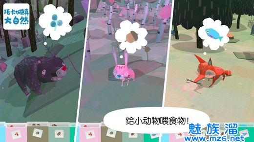 3、给小动物喂食,在寻找、建造的过程中收集各种各样的植物。