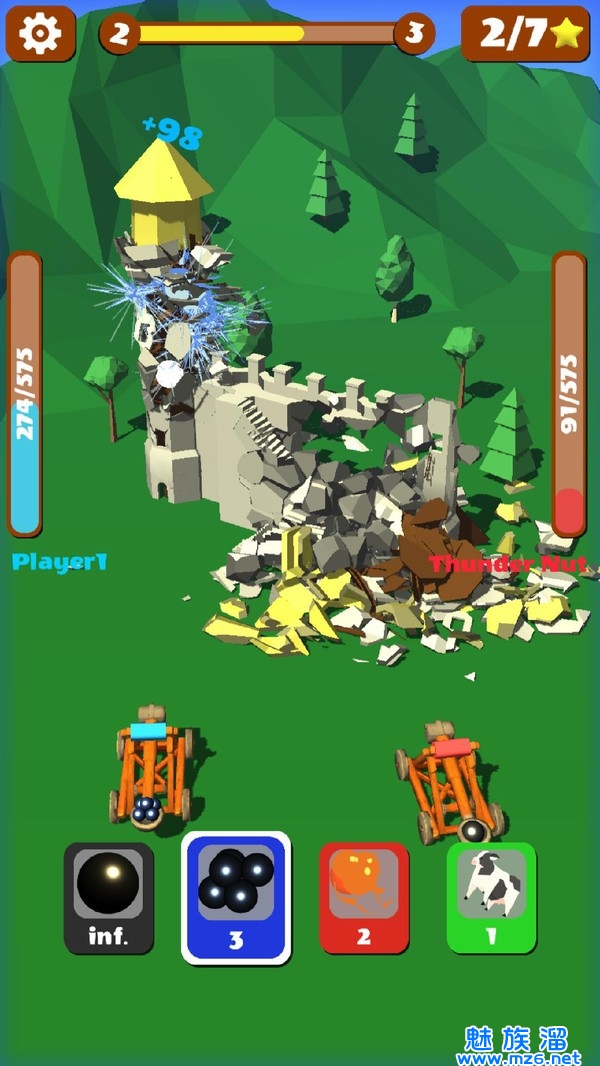 2.你可以操作自己的投石器来对城堡进行攻击,各种各样的城堡会在你的打击下被破坏。