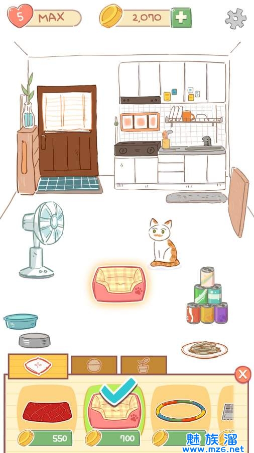3、为可爱的猫咪换装,摆放各种家具,简单有趣的益智消除游戏。