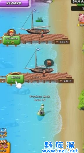 4、升级你大亨海港,解锁码头,购买加农炮船,使用进化来获得更多的钱,为每艘船雇佣一个熟练的管理者,并用你的手艺成为我们世纪最好的建筑点击英雄。