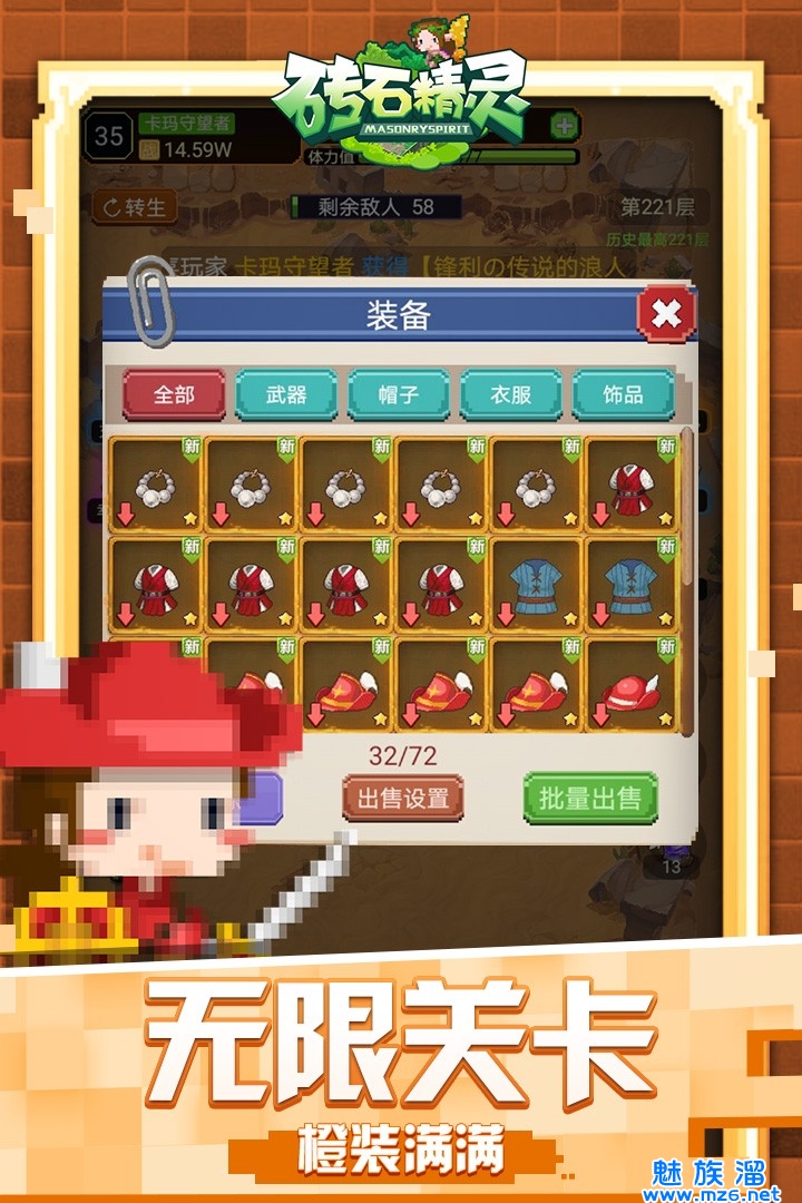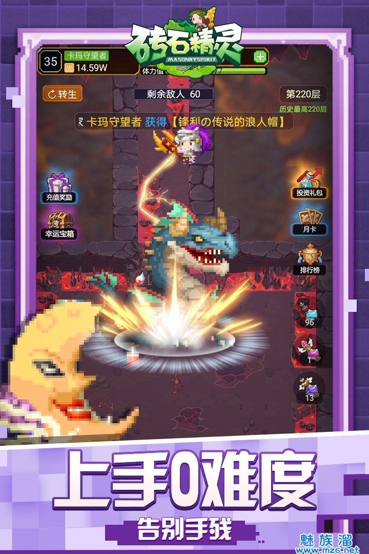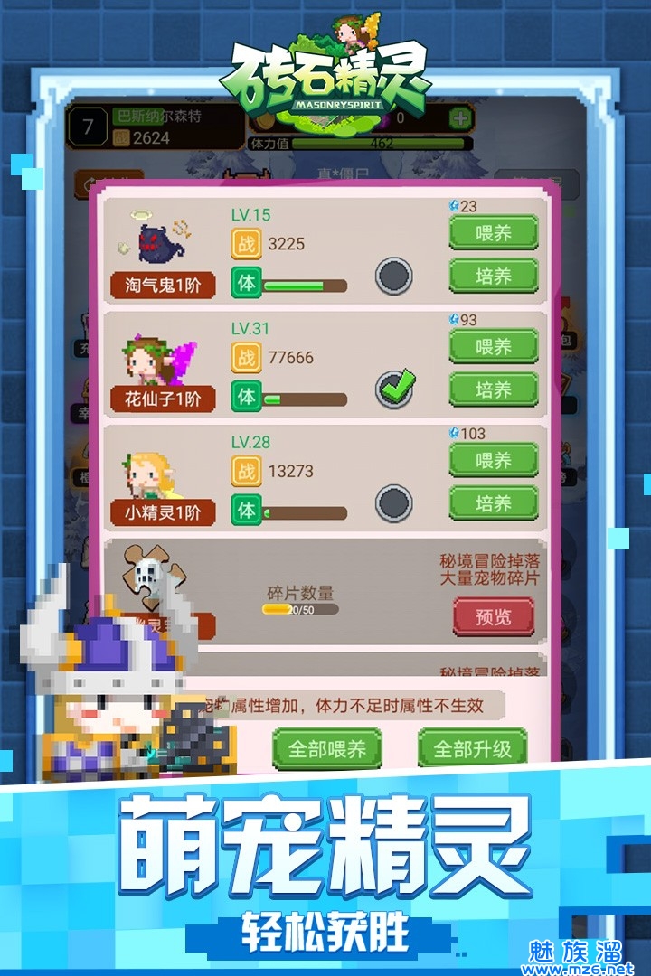 《砖石精灵》是专门为懒人游戏度身打造的一款像素风放置类英雄战斗游戏。 产品使用像素风卡通设计,角色和怪物Q萌可爱,场景类型丰富多样,随机生成的关卡系统,全天候自动打怪,无限装备,无限经验,战斗升级根本停不下来!