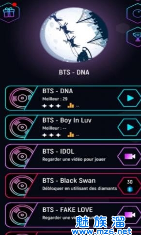 2、不同的音乐模式让玩家自由的挑战,全新的音乐画面带来更多的游戏乐趣享受趣味的游戏过程。