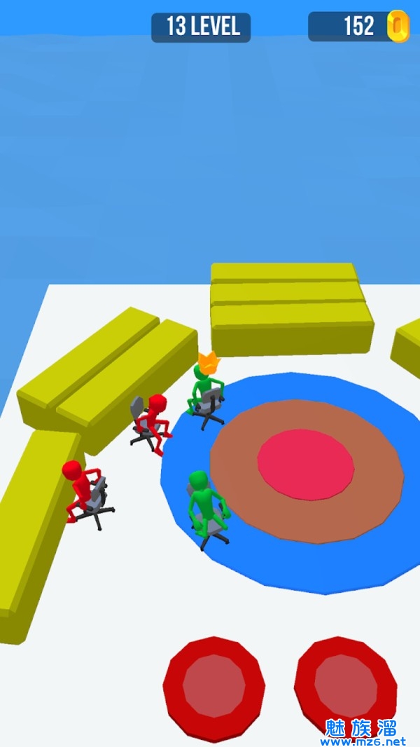 人类凳子大作战游戏是一款推动轮椅,展现搞笑大作战的休闲闯关游戏,所有人背对战场,挑战滑动椅子的角度,在战场内不断的弹射,朝着金币多的地方前进,一脚踹飞你的对手,抢到更多金币的玩家在这一轮比赛结束,能以优胜的成绩过关,并解锁新的挑战地图。