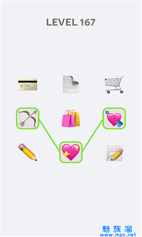 1、非常规性的连连看游戏,不单单是需要找到相同的emoji,而是需要将不同的物品连接起来;