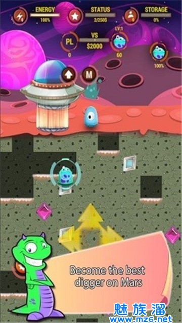 2、当我们开始游戏的时候我们必须好好观察自己的周围环境,我们可以开始火星探险之旅然后去挖出来各种宝贝,在那里我们带着一些矿物着陆;