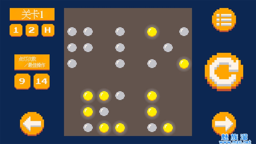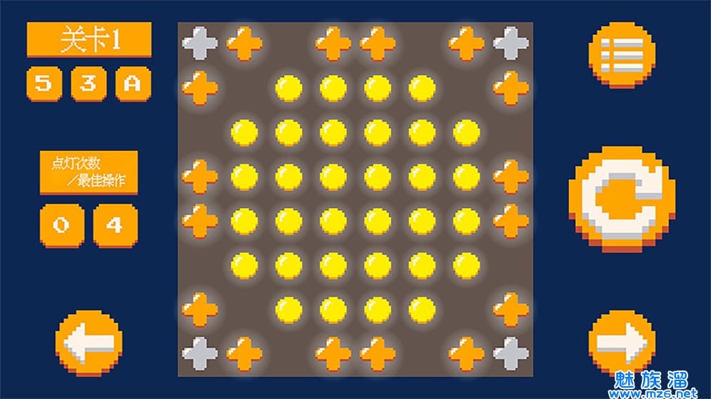 用最少的步数开启灯板上的所有小灯来完成游戏关卡。