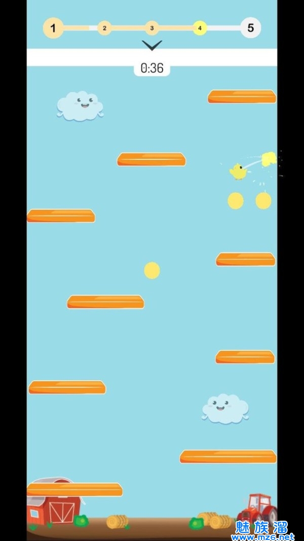 3、小鸡跳跃非常轻松,触屏操作,注意在平台上转弯的灵活性。