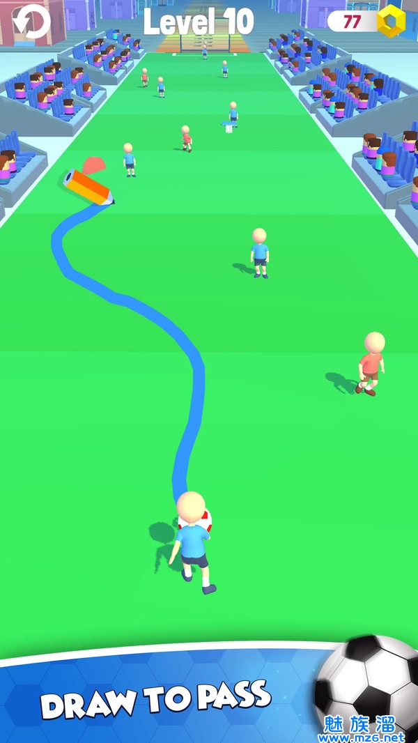 寻找最佳射门角度的体育闯关游戏,球员站的位置不能移动,在固定的地方点球射门需要技巧,玩家拿起画笔勾勒出射门的路线,通过物理线的判断可以预测这个球进不进,注意守门员的行动,想要这个成功得分,在画线的时候需要思考。