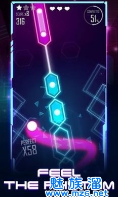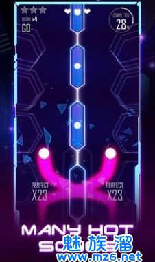 魔点舞线是一款根据音乐乐律来进行休闲闯关的游戏,玩家在游戏中将会根据音乐的背景卡点用自己手中的光剑将远处飘过来的光电切碎,每一首音乐就是一个关卡玩家可以根据自己的喜好选择歌曲进行挑战,每一首歌曲的困难系数都不相同玩家可以先通过简单的任务积累自己的道具会对你后面的闯关很有帮助,快来下载魔点舞线吧!