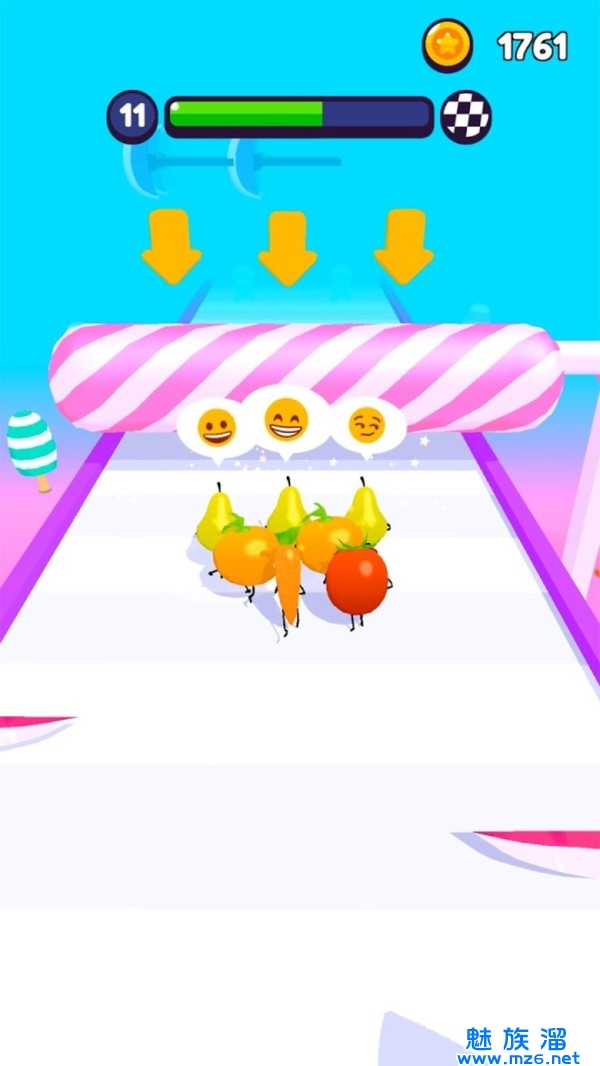 1.这是一种非常简单有趣的垂直游戏,玩家可以控制水果向前冲刺。
