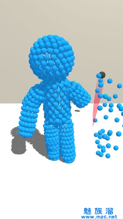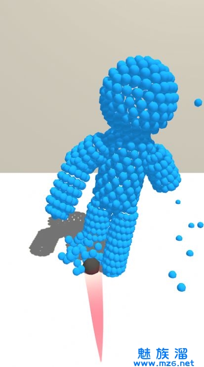 1、只有一种颜色的布娃娃,将蓝色的小人击倒,注意他不会倒下。