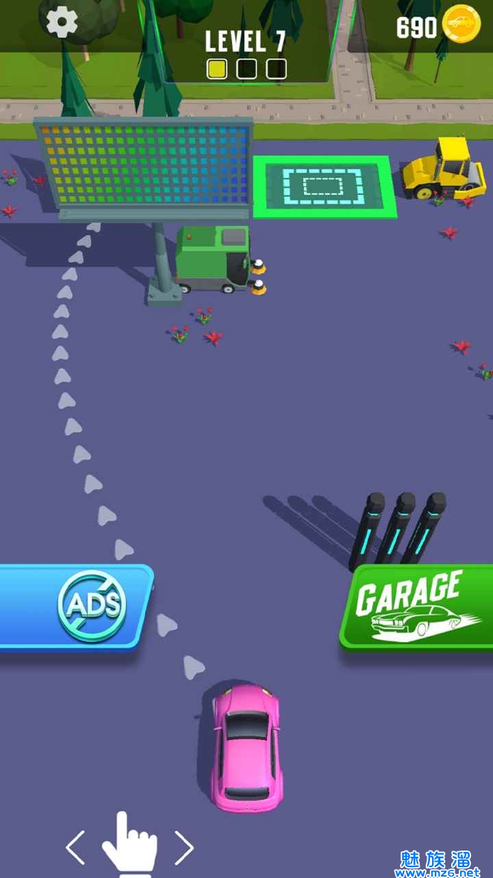 用你的手指画出预定的轨迹,绕过障碍物,把你的车停在正确的地方。