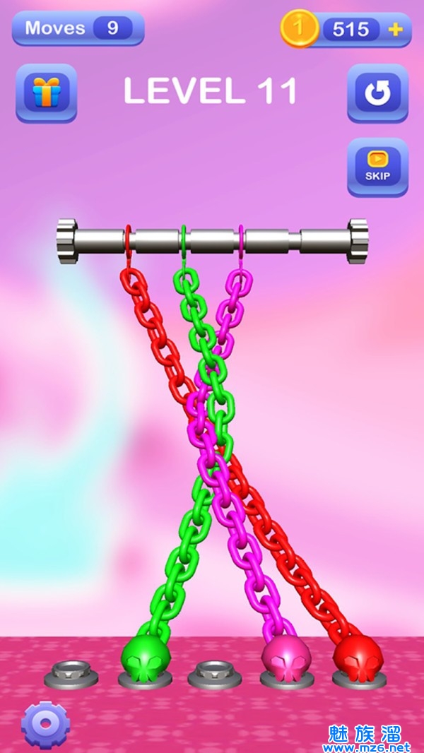 1、相互缠绕的铁链绳索需要玩家解开,你必须能找到正确的方法轻松完成;