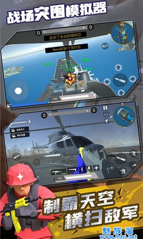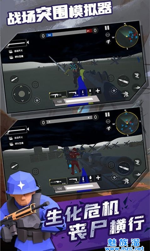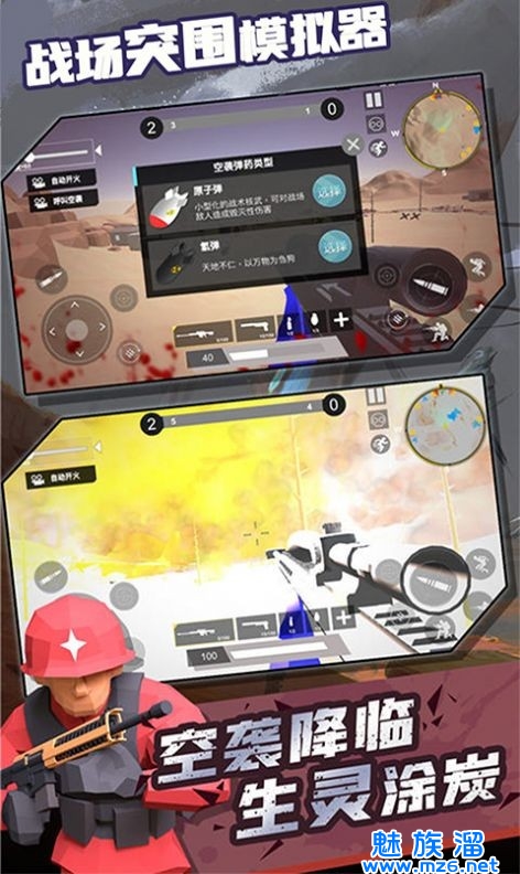 战场突围模拟器是一款模拟战争的休闲类游戏,玩家在游戏中将会参加一场虚拟世界中的世界大战,在全市现代化战争中玩家将会作为一名忠诚的士兵为捍卫自己的领土国家而战,当然这些知识游戏的其中一个主题,在游戏中还会有丧尸主题和各种空战的主题玩家可以自由选择不会有然和游戏单一的烦恼,快来下载战场突围模拟器吧!