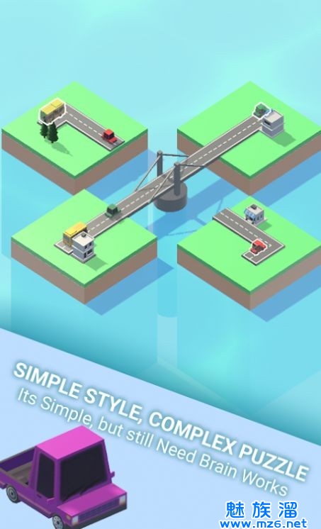 1、具有低多边形图形的体验,轻扫汽车并将它们带到目的地以完成舞台。