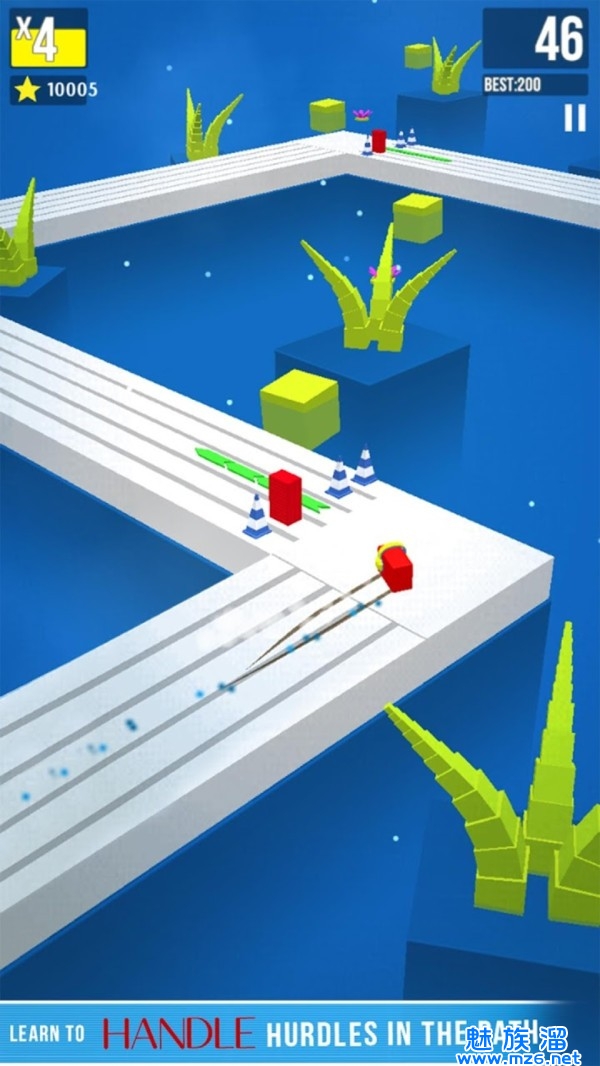 2、灵活转弯避免从平台上冲下去,敏捷反应躲避开各种障碍物,不断收集金币、道具等特殊奖励。