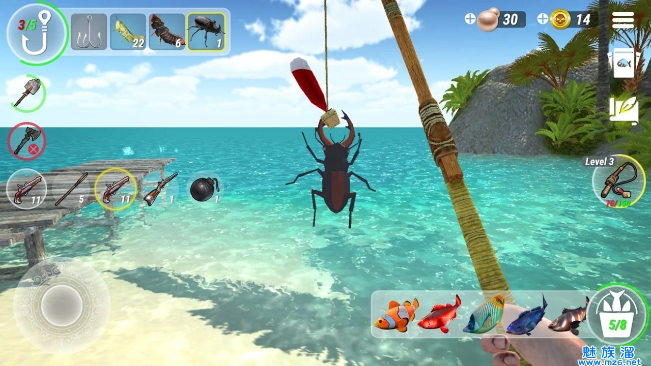 2、整体的画质极为流畅精致不卡顿,超多不同的鱼类都是能够通过自己的努力钓起来;
