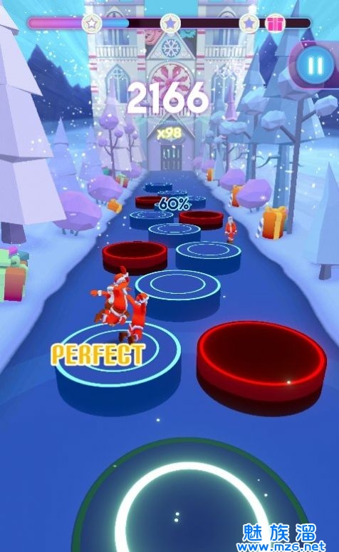 3、玩家需要操控角色跟着音乐的节奏来进行闯关,多种动人的音乐等着玩家来尝试。