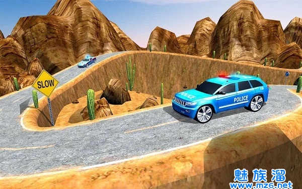 3、驶过弯曲的道路,展示您的极限警车驾驶技巧,驶警车在森林,瀑布,峡谷和丘陵等整个山区巡逻。