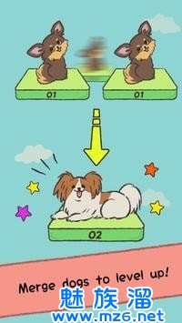 2、十分有趣的游戏玩法,合成更高级的狗狗,解锁更多品种的小狗吧;