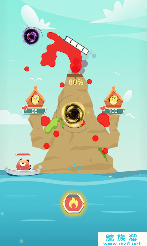 1、每一次的熔岩伤害会造成不一样的效果,好好的控制火上别伤害小鸟。