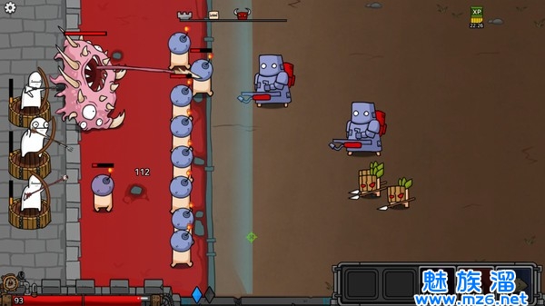 需要通过发展科技,不断地升级士兵装备,击败来袭的敌方士兵,最终成功守卫城堡。