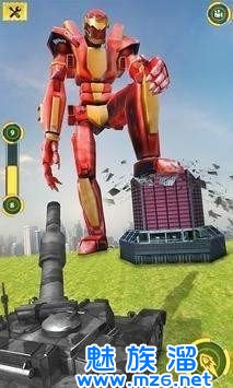 3、解锁变形金刚,机器人用脚踩踏大楼,多种摧毁方式自由尝试。