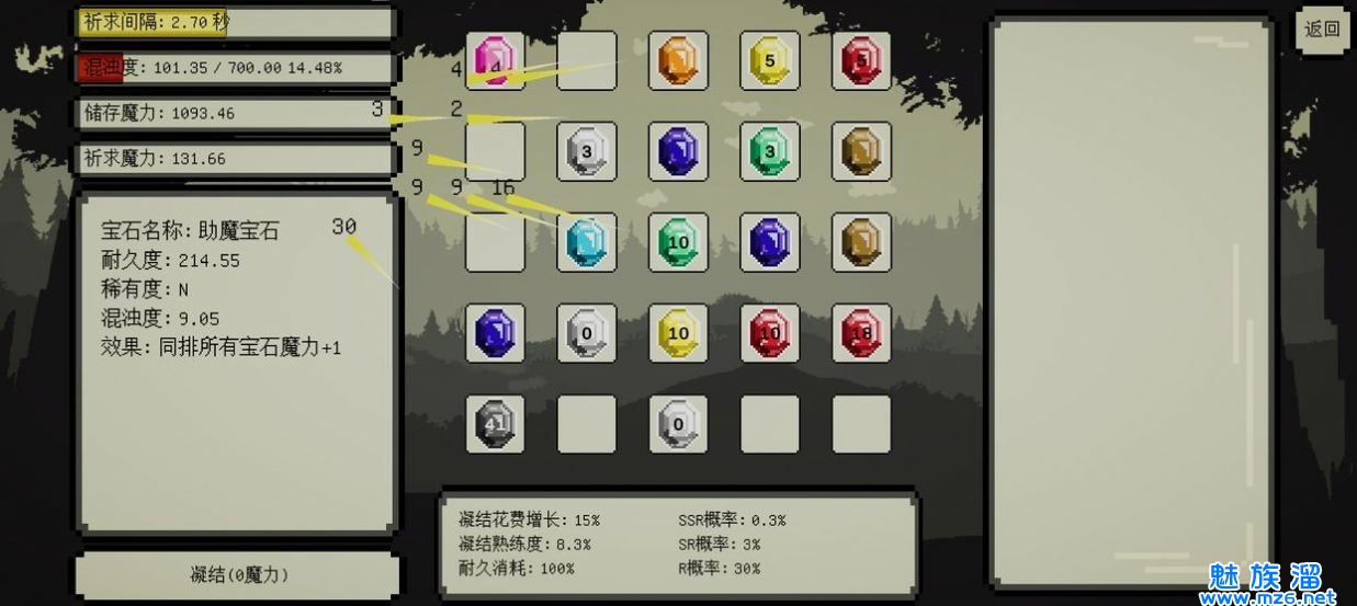 3、获得魔力之后,可将魔力凝结变成更多的宝石,每个宝石都有不同的功能和不同的稀有度。