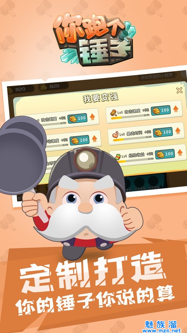 3、提升人物的等级,用手中的锤子毁天灭地,将跑酷和闯关完美的结合。