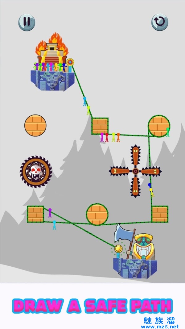 1、您只需要用手指,拉动绳索来创建安全的路径,控制那些在绳索上遇险的人。