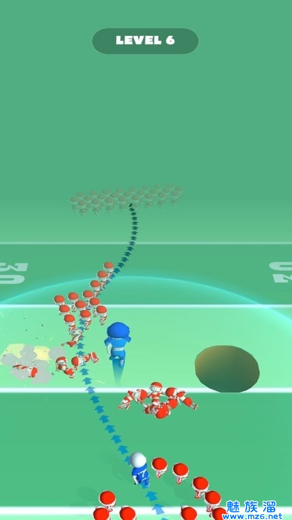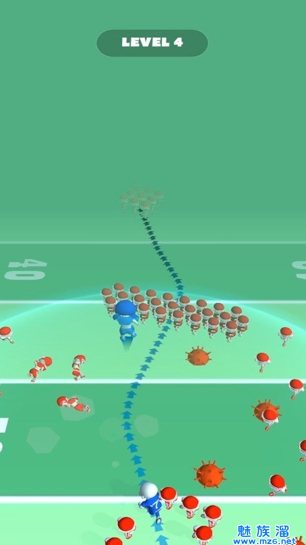 橄榄球跑游戏当中玩家需要控制自己的小人带着橄榄球进行前进,你的目标就是将橄榄球带到终点线,并且在你前进道路上还会有各种阻碍,不仅有地方队员,还有地雷等等陷阱,玩家可以自由地活动,还有多种方式可以躲避障碍物,非常具有挑战性!喜欢的话不要错过!