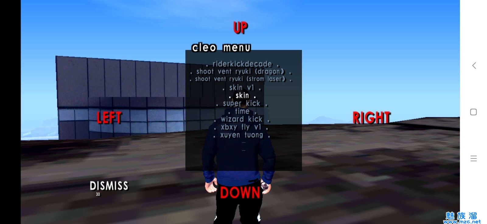 2、假面骑士人物切换方法:进入游戏中间下滑,调出作弊代码,翻页到"skin"可进行人物角色切换