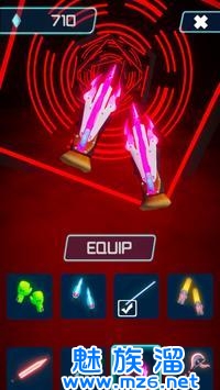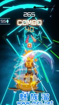 2、通过音乐节奏来对迎面而来的方块进行劈砍消除,有些障碍物需要躲避;