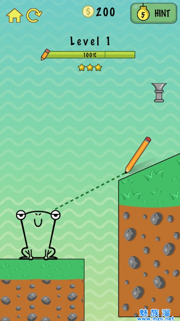 1、青蛙要死了,发挥你的聪明才智,顺利的画线,来拯救可怜的小青蛙;