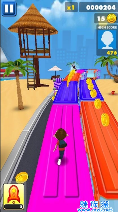 1.利用喷气背包提高速度,地铁上有无数的奖励,全部道具自已使用,带来无限的快感。