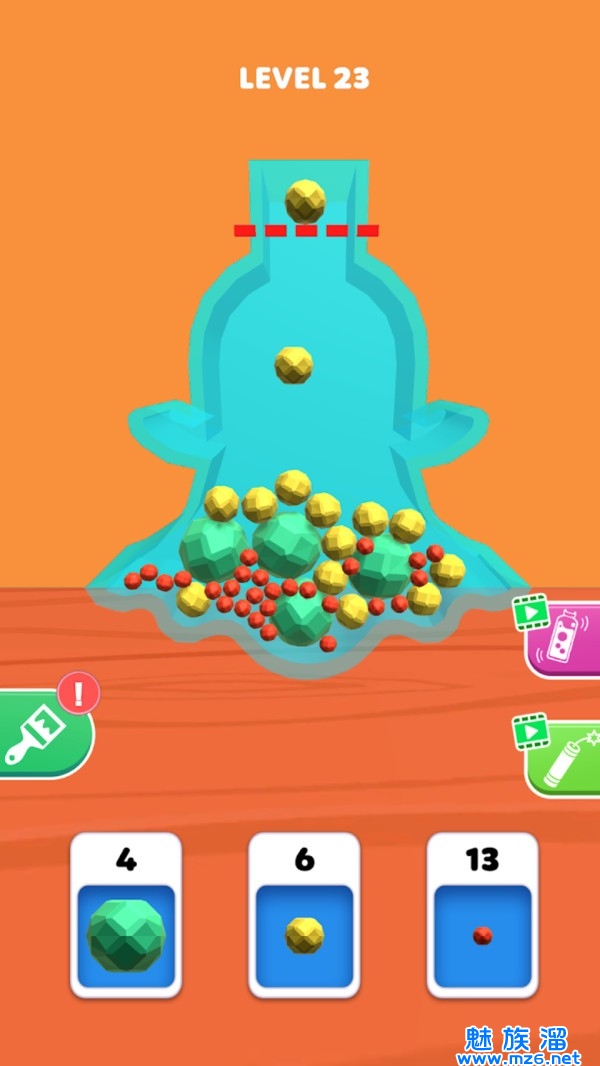 3、超级简单的任务,越到后面瓶子当中的球球颜色会越来越多,数量也越多。