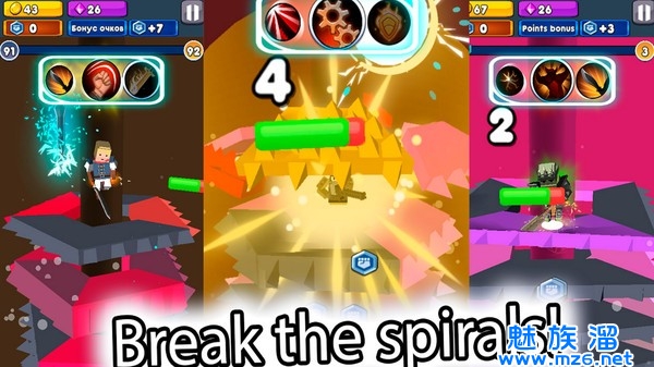 4.英雄粉碎螺旋-这是一种钻螺旋形游戏,可在色彩斑斓的平台上跳跃,用剑击中,并产生