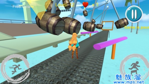 女孩智勇大冲关游戏是一款变身甜酷女孩,挑战水上赛道的动作冒险游戏,经典跑酷玩法,征服创意赛道,各种机关障碍你能应对吗,注意锤子、棒子移动的频率,抓住最好的时间趴下去,跳跃到旋转机关上的时间要刚刚好,挑战最危险的水上冒险,每一刻的犹豫都会失败,大胆的冲吧!