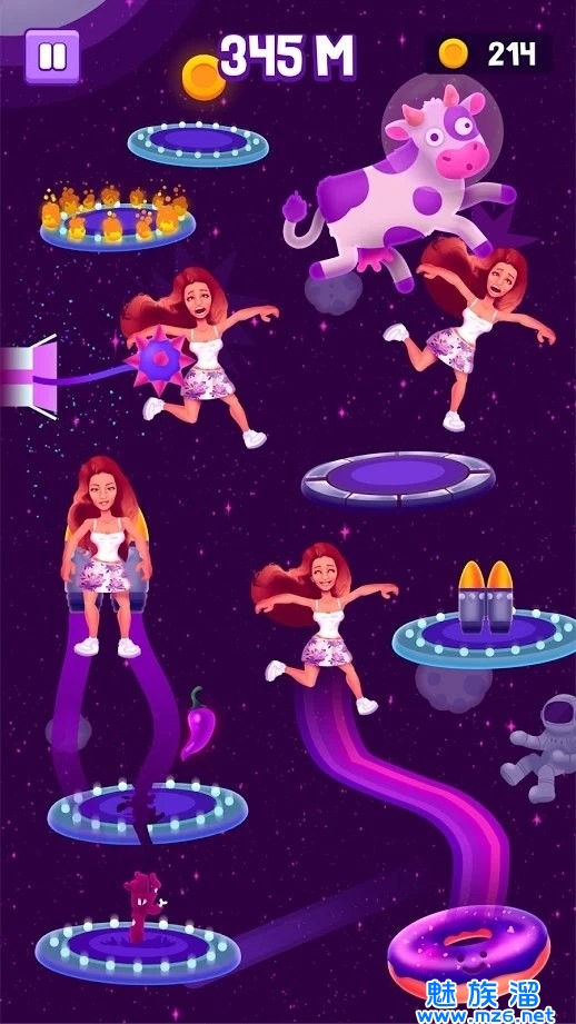 1、您将必须克服阻碍您前进的各种障碍,在屏幕上按可以操纵角色并避免自由落体;