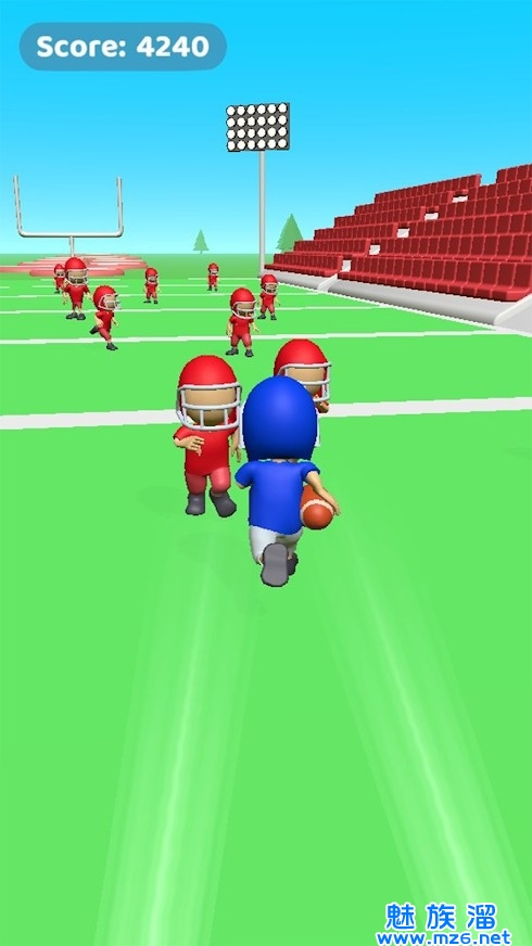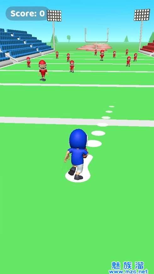 1、各位玩家需要灵活地操控四分卫,顺利带球绕过所有对手的各种战术的围追堵截将他们全部顶出你的奔跑路线。
