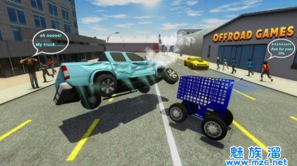 购物车模拟器游戏是一款以购物为主要题材的冒险闯关游戏,玩家在游戏之中操作好自己的购物车在街上进行疯狂的跑酷,将所有挡住你的让全部给他撞飞,当然也要小心各种障碍物以及各种陷阱,展示出你灵活的走位,刺激十足,闯关成功后还会获得各种的奖励,还有许多非常具有挑战性的内容等你来解锁,感兴趣的快来试试吧!