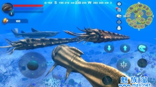 1.通过非常逼真的3D画面,您可以控制鲨鱼开始深海旅行;