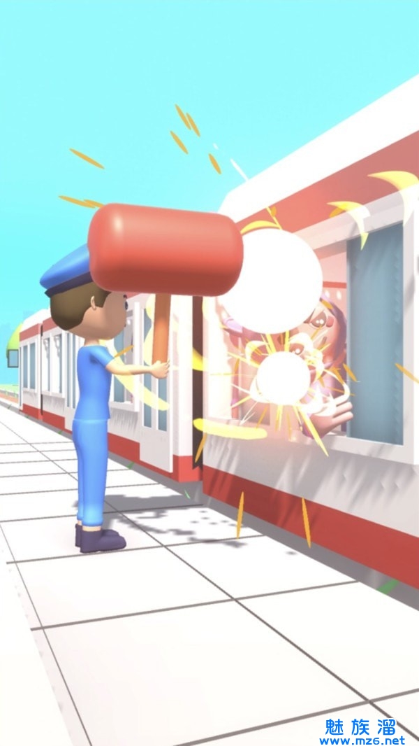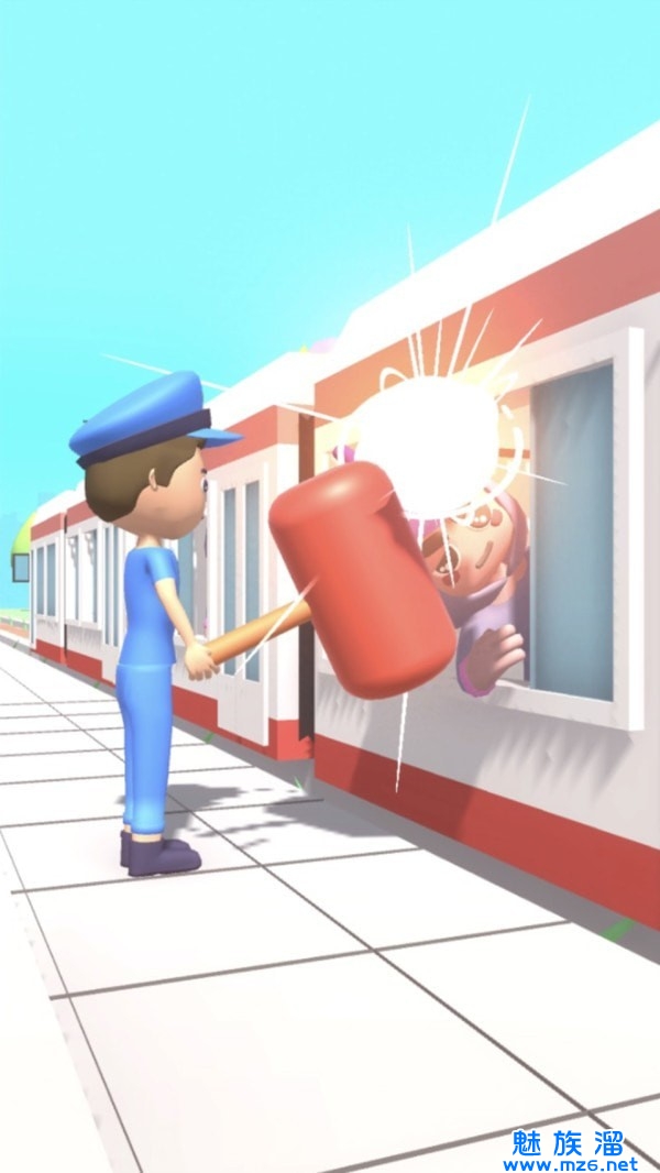 轻松简单的游戏玩法,应用大锤子来将那些违规的乘客全部给击打回去吧!游戏提供的锤子十分的有趣,当你停止敲击的时分,便会把头缩回去。