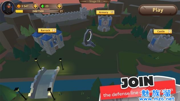 您可以建造微小的塔楼或庞大的城堡,闲置或进攻。您可以将您的军队放在塔楼或城堡附近,选择保卫王国的方式。