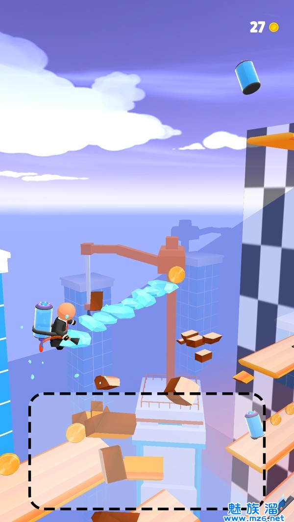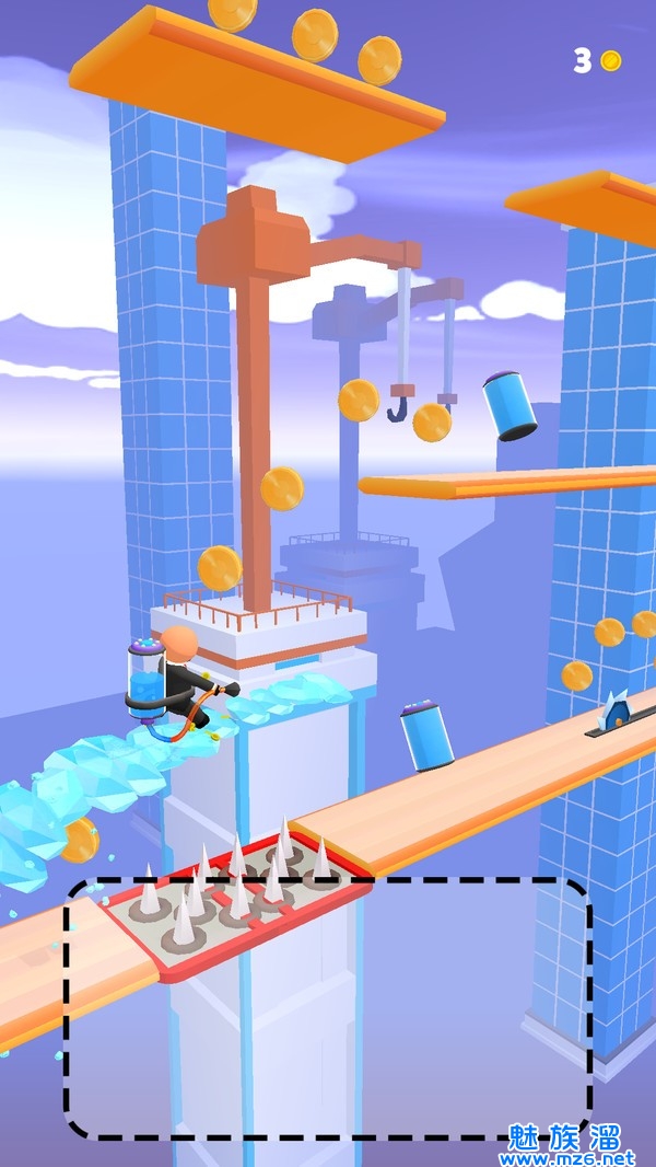 2、收集尽可能多的冰,并在脚下画一条结冰的路,以达到目标! 准备绘制一条结冰的冲浪路线,滑动并继续运行。