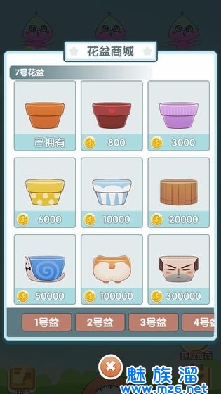 这些小盆栽长大之后还可以出手兑换更多的金币,玩家可以升级合成植物获得更多的奖励哦。