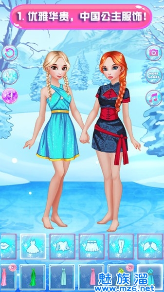 3、上千种精美服饰,上万种个性搭配组合,为公主换上美美的妆容服饰去参加生日派对吧!1、冰冻的公主婚礼,设计师名人皇家别致迷人,在冬天的仙境降雪城堡宫殿中。