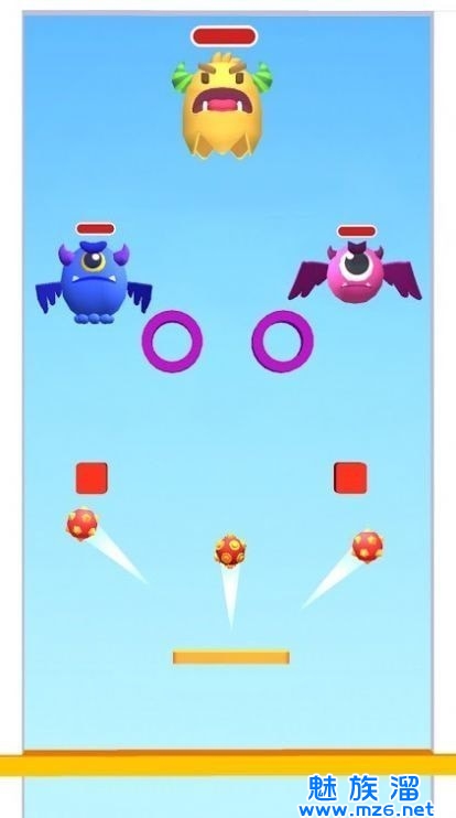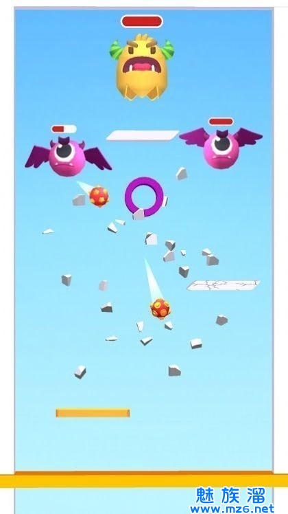 控制小怪物来发射小球并打破积木,每块砖都有自己的血量,当数量达到零时,积木将破裂。
