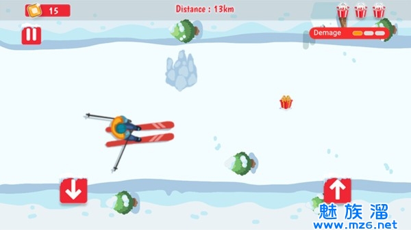 4.防止您的滑雪者被雪障碍和雪坡击倒,以证明您在无尽的滑雪比赛中排名第一。