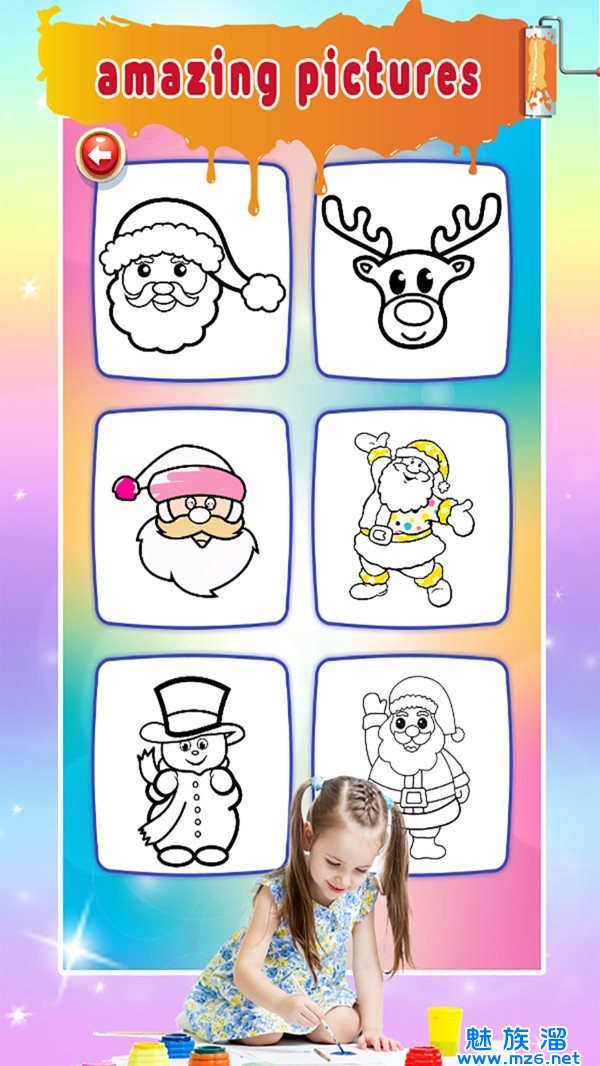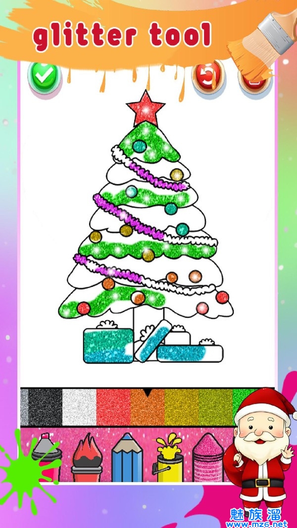 一款十分好玩的上色绘画游戏,圣诞节游戏主题,有很多关联圣诞节的元素在里面,玩家可以使用各种颜色的画笔来上色,发挥自己的创造力吧,相信你一定能创造出让人惊叹的作品出来,有时候当你的兴致来了,也能用黑色的画笔来进行绘画,绘画完成之后再来一次全面的填色吧。